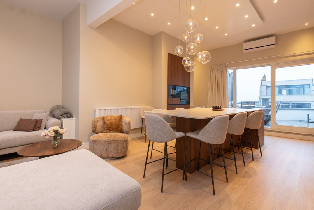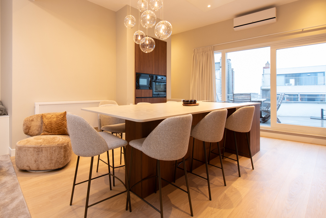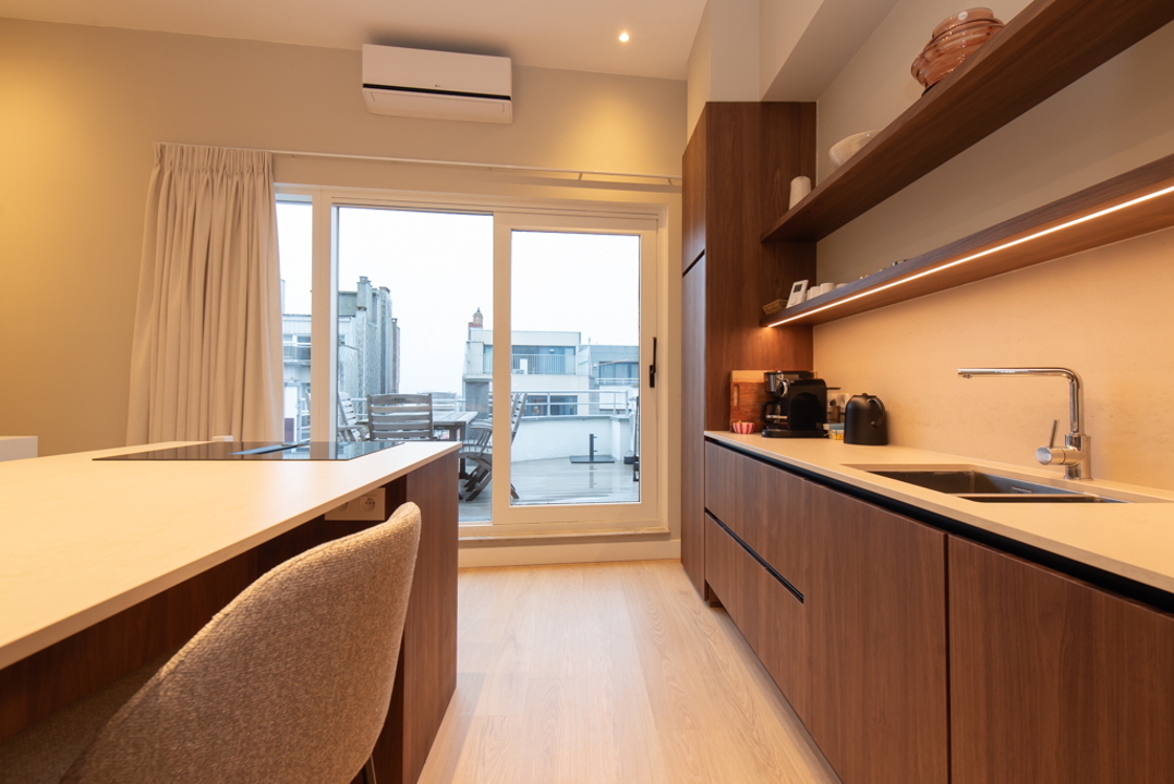 Luxuriöses Maisonette-Apartment mit drei Schlafzimmern, ideal für Familien, in bester Lage. Ausgestattet mit allem modernen Komfort, einem Fahrradabstellraum und einer großzügigen Sonnenterrasse, auf der Sie sich nach einem erlebnisreichen Tag wunderbar entspannen können. Das Apartment befindet sich im 7. und 8. Stock, in der Nähe des Wellenbrechers von Ostende. Der Bahnhof ist zu Fuß erreichbar.