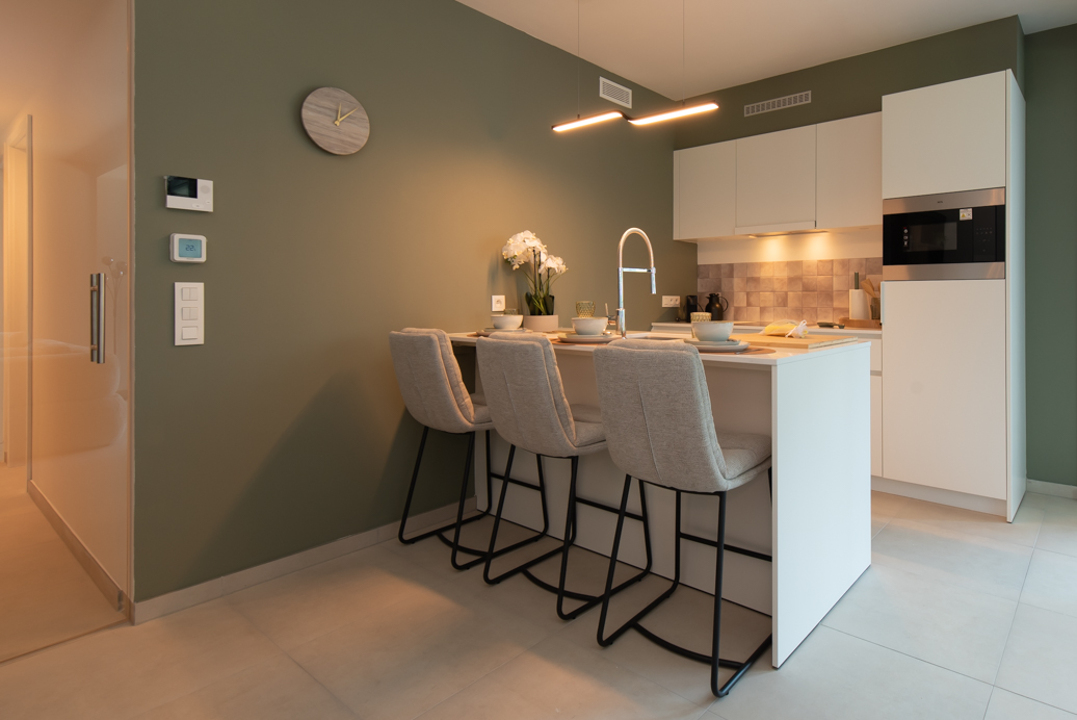 Het appartement is gelegen op de 2de verdieping en geniet van een ruim terras, voorzien met loungemeubilair.