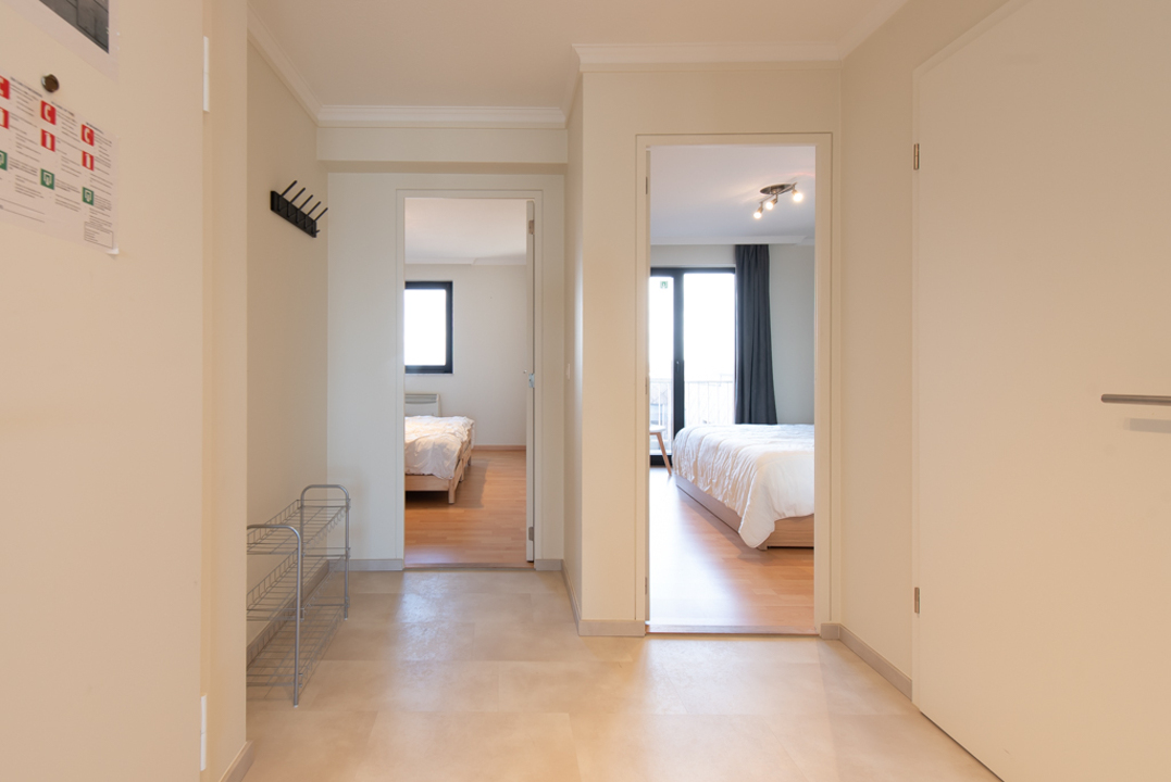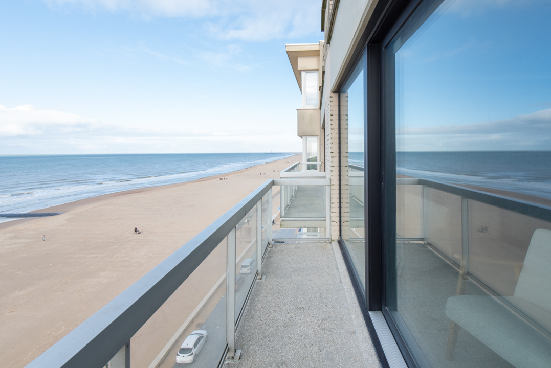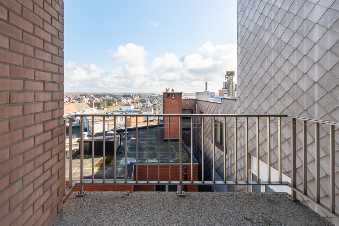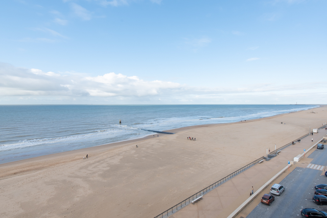Gelegen op de 7de verdieping van een residentie in Mariakerke, biedt dit prachtig gerenoveerde appartement alle comfort voor wie op zoek is naar rust, ruimte en een adembenemend uitzicht op zee. Het appartement beschikt over twee volwaardige slaapkamers en een moderne badkamer. De indeling omvat een lichtrijke leefruimte met open keuken en directe toegang tot het voorste terras, waar je geniet van een prachtig open zeezicht en de avondzon. Het achterste terras biedt extra buitenruimte en een rustige plek om te ontspannen. Daarnaast zijn er een wasmachine en droogkast aanwezig voor extra gemak.