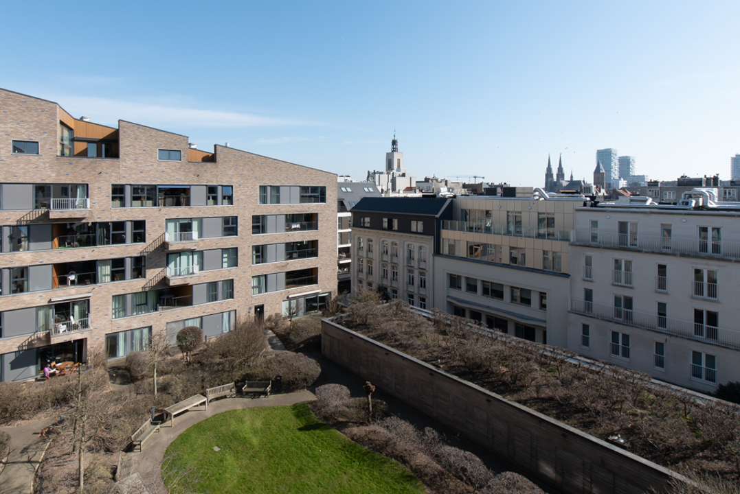Op de eerste verdieping van het complex is er een gemeenschappelijke binnentuin.